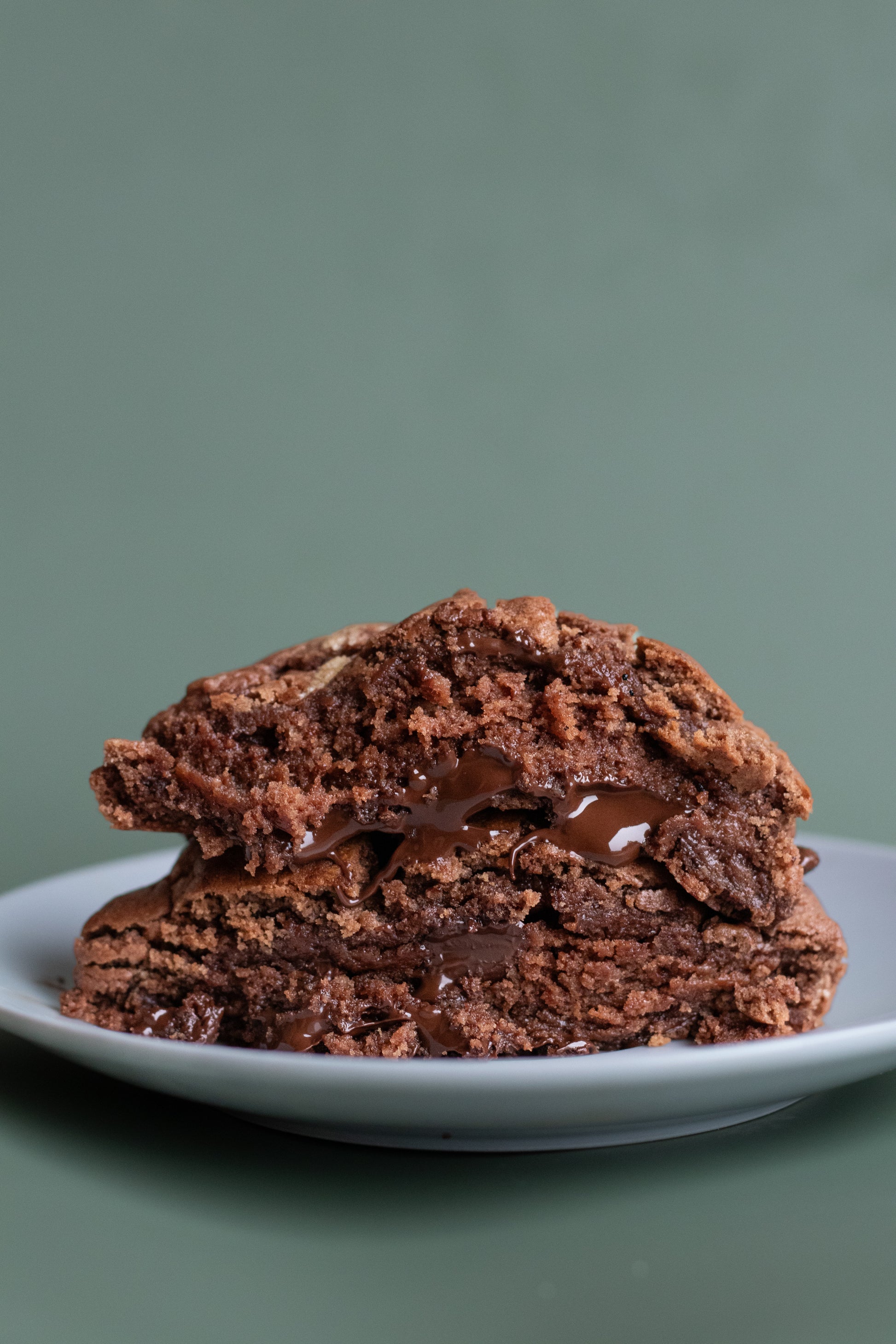 Cookie gourmand tout chocolat incrusté de morceaux de chocolat noir fondant avec un coeur fondant de pâte à tartiner noisette et parsemé de fleur de sel.